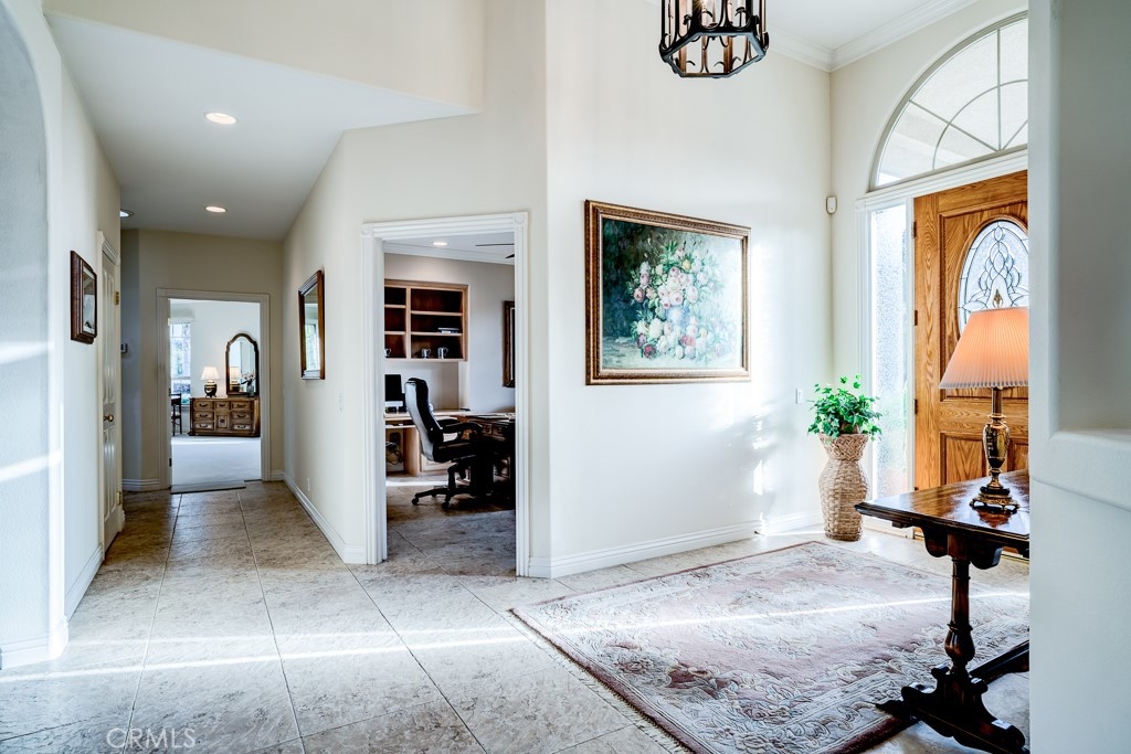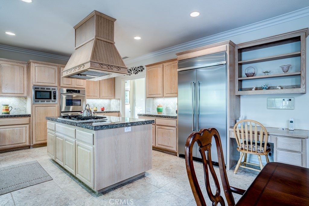 This beautiful turnkey Executive pool & spa home is situated on one of the most peaceful and tranquil streets in its area of Chapparal Estates, Los Ranchitos, Santiago Estates and boasts 4,207 sq. ft., 5 bedrooms, 4.5 bathrooms and a 4-car garage w/shop, including RV parking situated on almost an acre of land. You will just love all the amenities, upgrades and stately appointments this estate home has to offer including, formal entry, living, dining rooms, spacious office, large laundry room w/sink and storage space, Italian ceramic flooring & upgraded neutral carpet throughout the home, central vacuum system, ceiling fans, numerous built-ins, lots of storage, high ceilings, upgraded base boards and crown moulding, window treatments & blinds and soft water system and NuTone intercom system. Amazing Chef’s kitchen with granite counters with full tiled back splash w/granite island w/cooktop & overhead range hood, KitchenAid stainless steel appliances, water filtration system and lots of cabinet space w/in kitchen dining. Stunning master bedroom suite w/retreat area w/raised hearth gas fireplace w/mantle. Master bathroom has step up jetted spa tub, separate shower, dual vanity sink’s and 2 large closet’s w/built-ins. Incredible family room with raised hearth granite gas fireplace and built-in cabinetry. Four other spacious bedrooms w/mirrored closet doors, mosaic tiled trim bathrooms and built-ins. The property is fully fenced in with private entrance gate, night time lighting features and includes a flagpole and a separate gardening pad. Fully landscaped front and backyards with various fruit trees and a backyard staircase to an elevated patio w/seating area to enjoy the views. Enjoy your spacious California covered patio for entertaining. Close to California distinguished schools, entertainment, shopping, hospitals, wineries and more.
