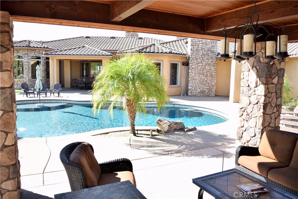This unique dream home is nestled above the prestigious ranch homes of Los Ranchitos and the Santiago Estates. The gated entry provides complete privacy and security. The first thing you notice when coming up the circular driveway are the uncompromised panoramic views! This exclusive luxury pool estate has everything you'll ever need! The masterful design provides for a very functional floor plan! This entertainers dream home features an exquisite gourmet kitchen. Whether you are standing in the kitchen or relaxing in the family room, the views are simply breathtaking. This 5 bedroom, 4.5 bath home was custom built for comfort so regardless which room you are in you feel like royalty. This nearly 6000 square foot home has everything you could ever want in a custom home. The sellers are the original owners and the pride of ownership shows with the meticulous attention to detail everywhere you look in this home. Upgrades include hardwood floors, granite countertops, travertine flooring and more! The 5 car garage is oversized and has an enclosed storage room. The game room is located off the back of the house which makes access to the pool a delight. Outside you will find just as impressive with amenities such as an pebble tech pool, sport court, a beautiful covered patio and a separate pool cabana complete with a fireplace. This 3.25 acre property is just minutes from historic Old Town Temecula, easy access to the I15 freeway and the spectacular views are unmatched.